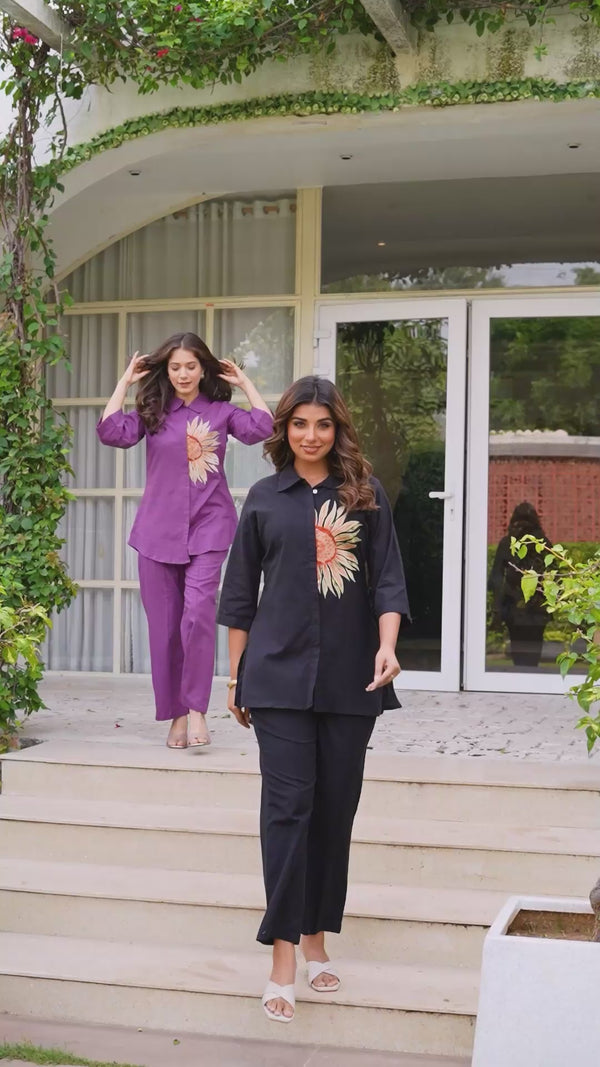 Elegant Heritage Cotton Co-ord Set – Purple Shades →