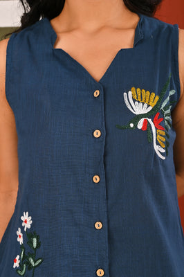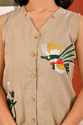Rust Aura Sleeveless Cotton A-line Suit Set with Handcrafted Motifs
