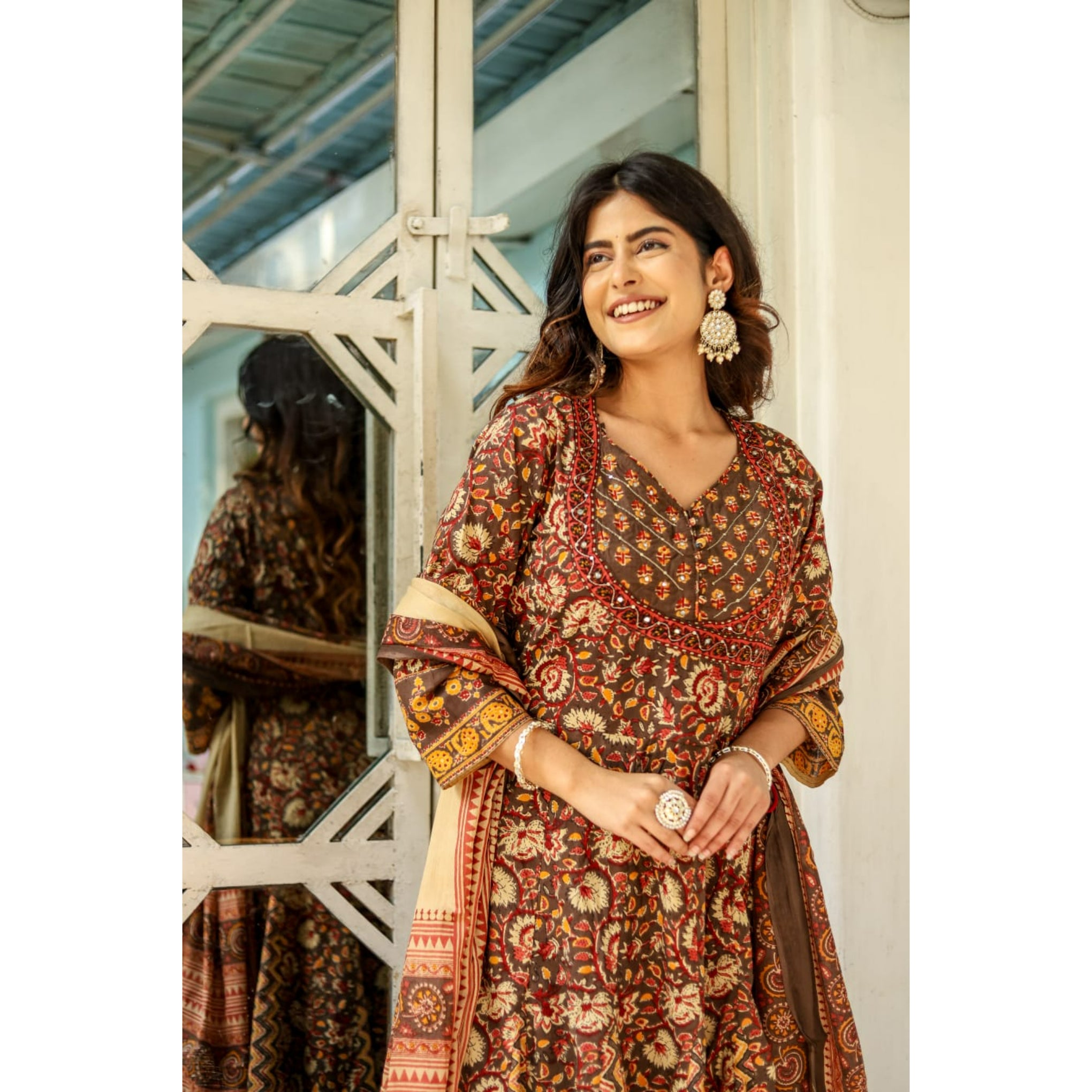 Redefine elegance with our Anarkali Dupatta Suit Set, designed for a graceful and sophisticated look. Made from pure cotton, this outfit ensures breathability and all-day comfort. The full-flared Anarkali silhouette adds a regal charm, making it an ideal choice for festive occasions, cultural gatherings, and everyday elegance.
