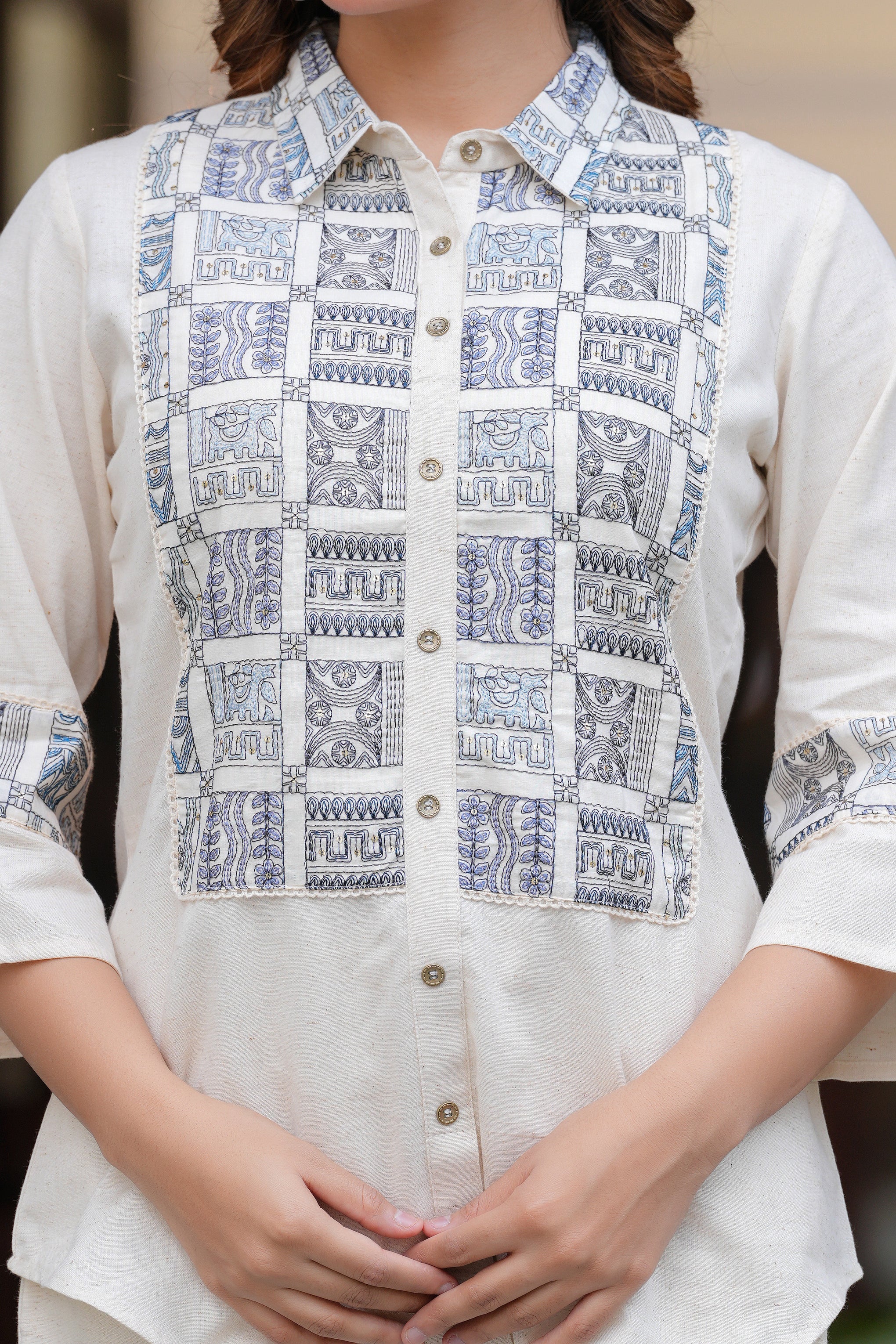 Discover elegance in simplicity with our Subtle Shine: Off-White Embroidered Co-Ord Set, a perfect blend of comfort, heritage, and minimalistic charm. This ensemble is thoughtfully crafted from breathable cotton flex fabric, making it ideal for all-day wear—whether at work, travel, or casual outings.