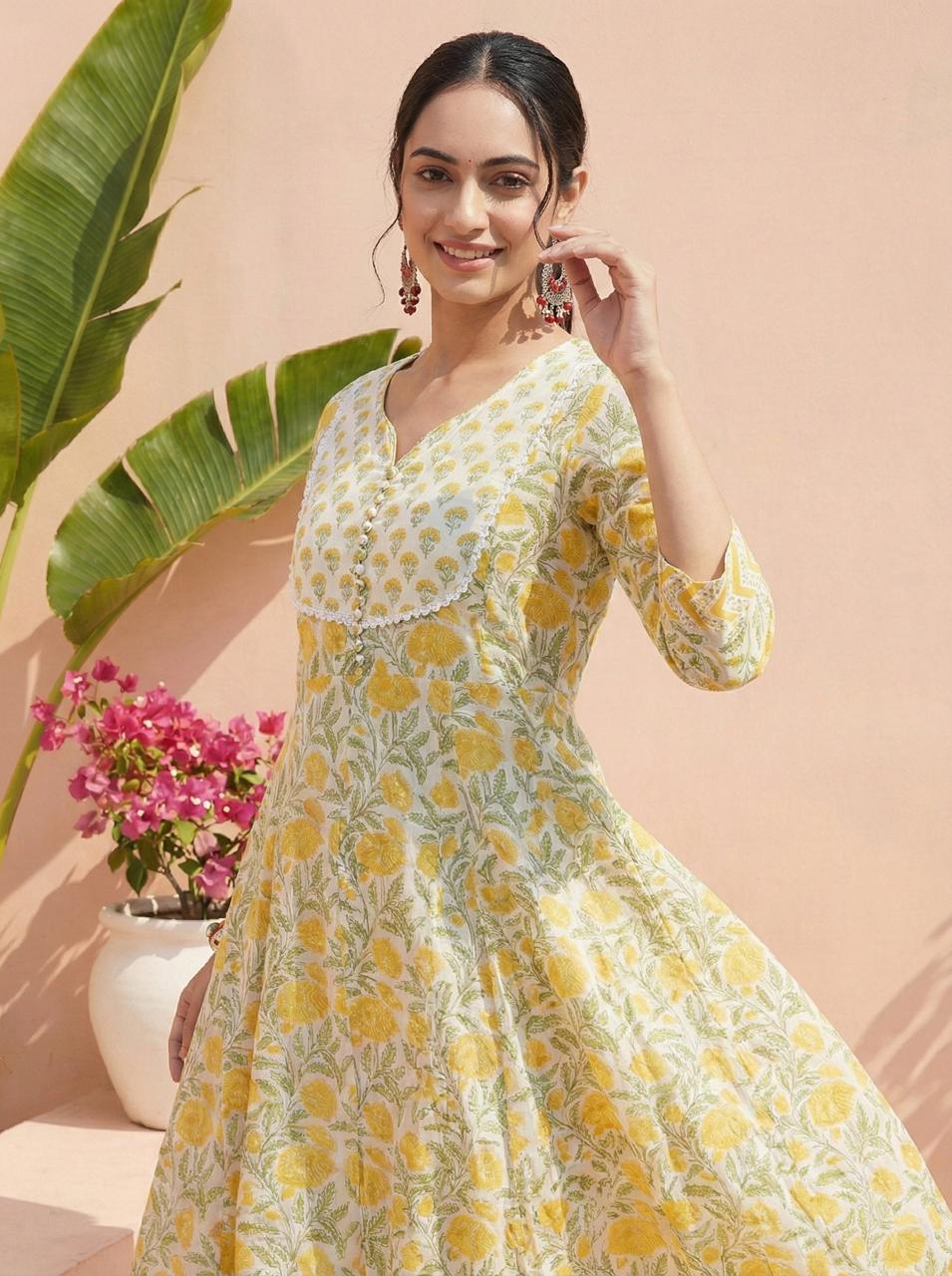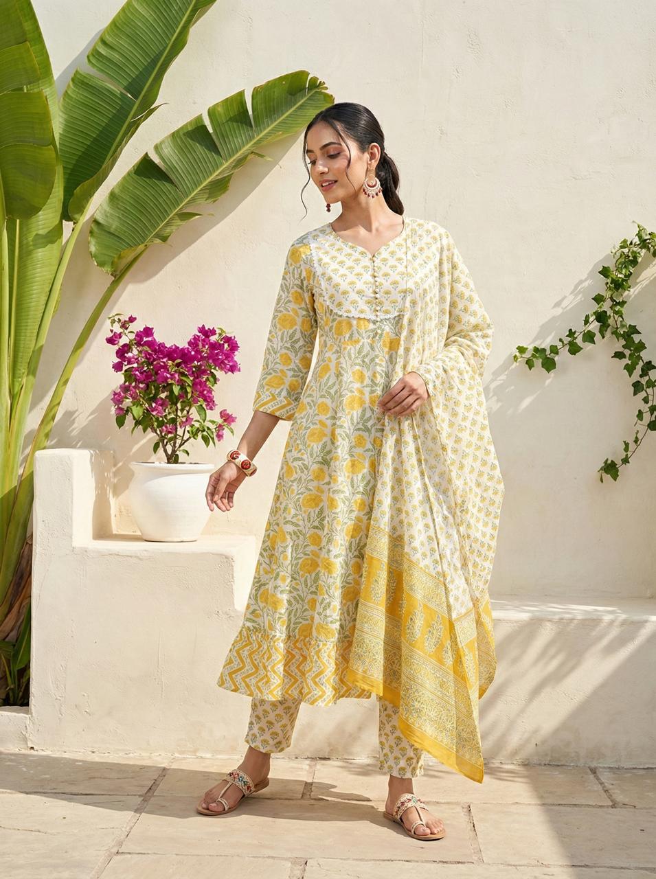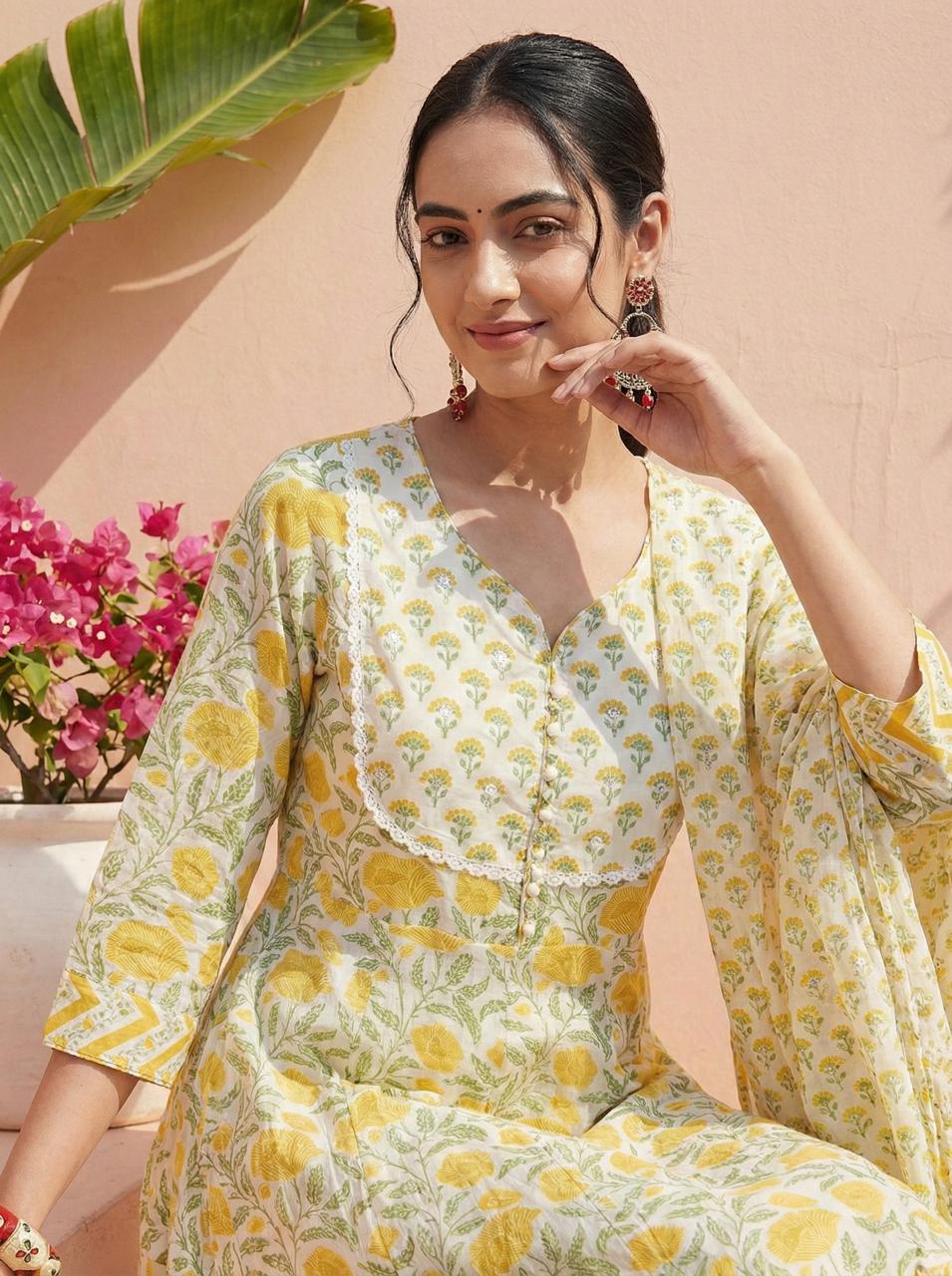 Golden Garden Yellow Cotton Suit Set with Dupatta – Indolady Skip to content
