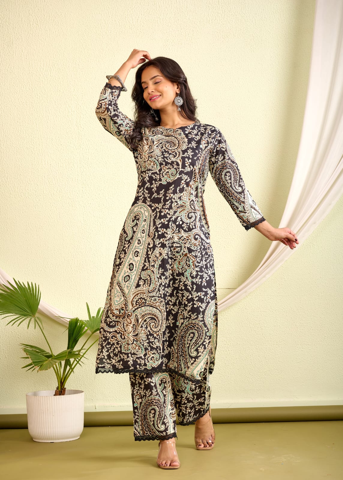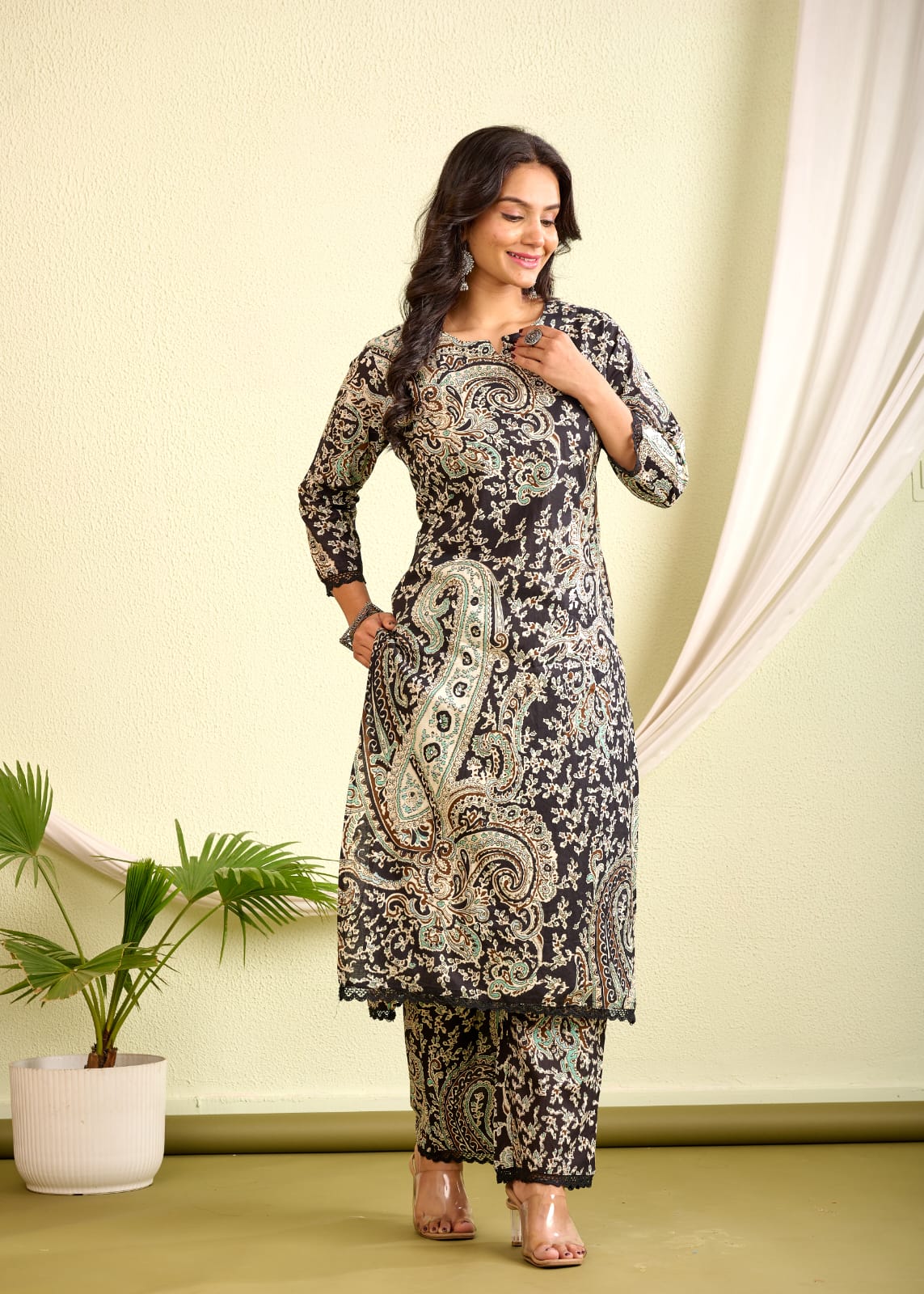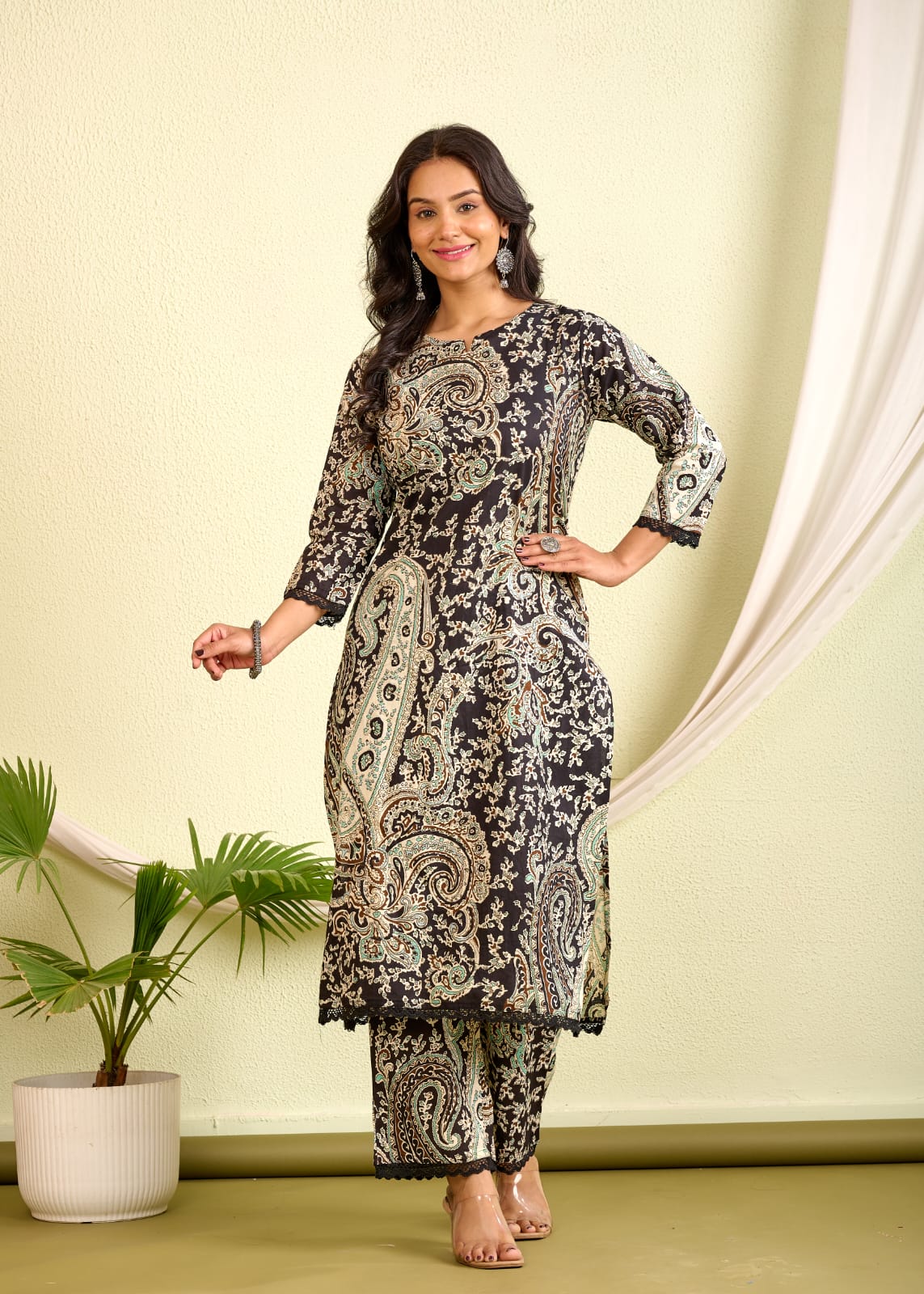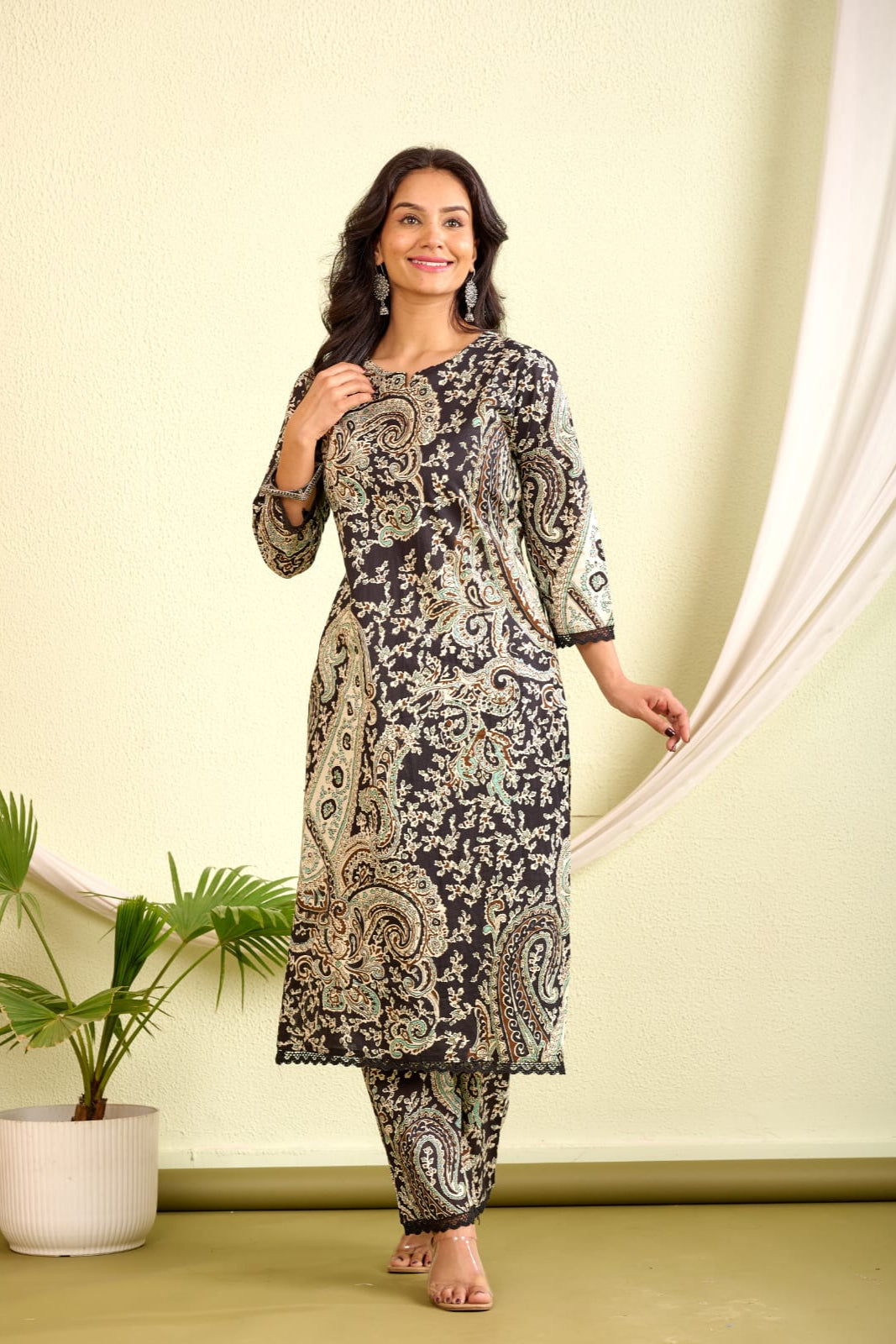 Elevate your everyday style with the Indolady Cotton Printed Co-ord Set—a perfect blend of comfort and statement design. This black straight-fit kurta and pant set features delicate handwork on pure cotton fabric, making it ideal for casual chic or workwear looks.
