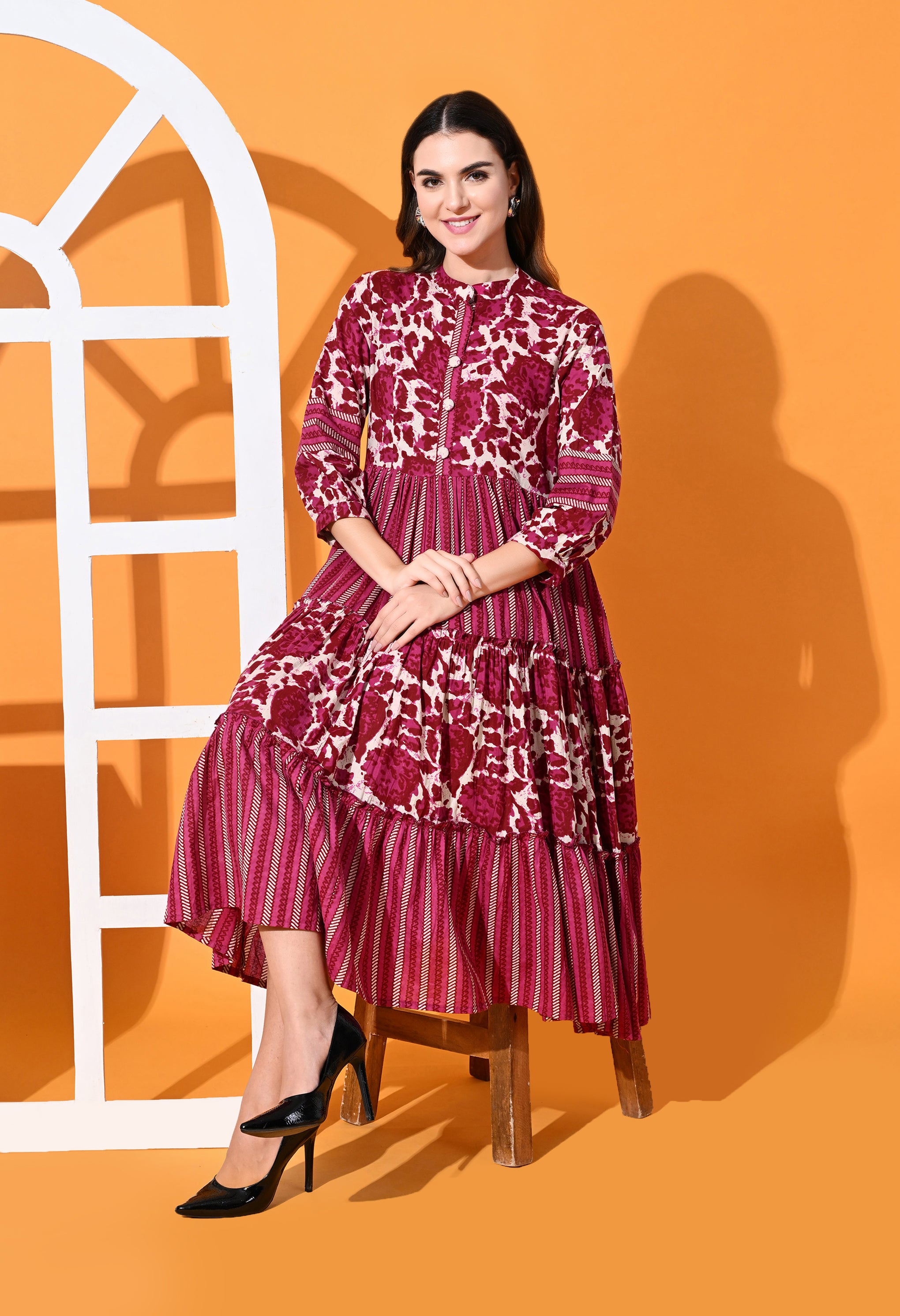 Step into elegance with the Indolady Cotton Flares Long Dress, a beautiful blend of comfort and flair. Crafted from pure cotton, this long, tyre-style dress offers a breezy silhouette thatβs perfect for warm days and stylish occasions. The flowy layers and subtle detailing make it a wardrobe favorite for everyday sophistication or festive outings.