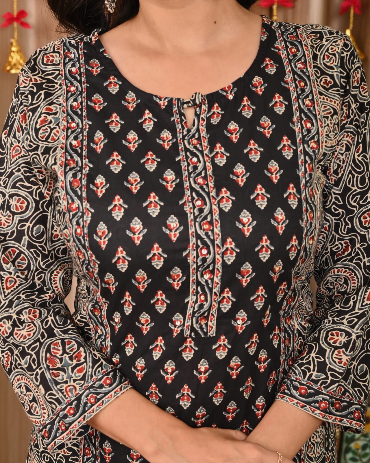• Kurta Type: Straight-fit with traditional motifs