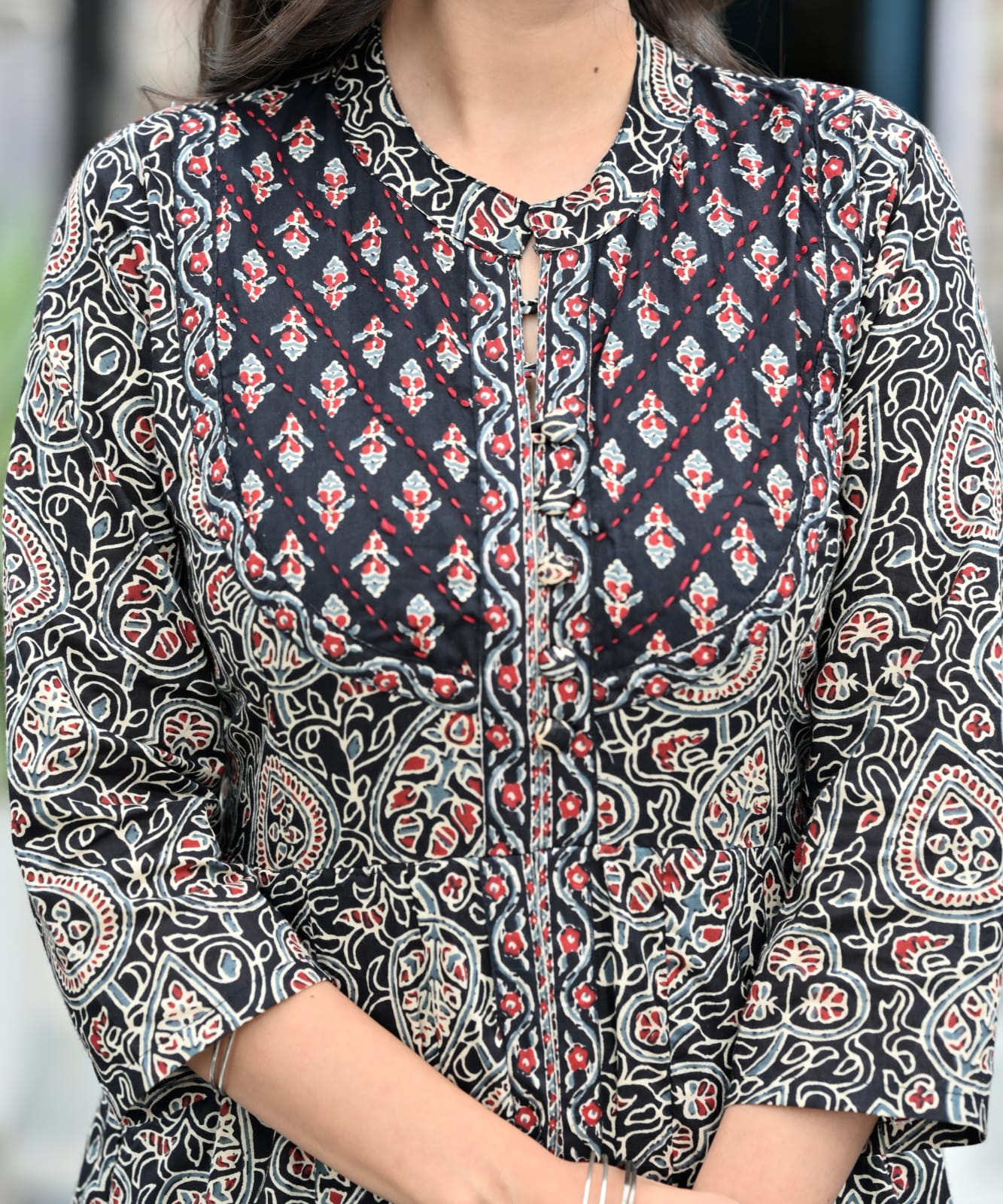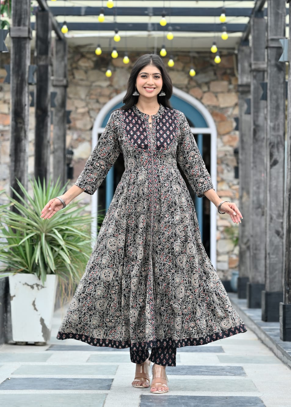 IndoLady Noir Royale Cotton Printed Flared Suit Set with Hand Embellis – Indolady Skip to content