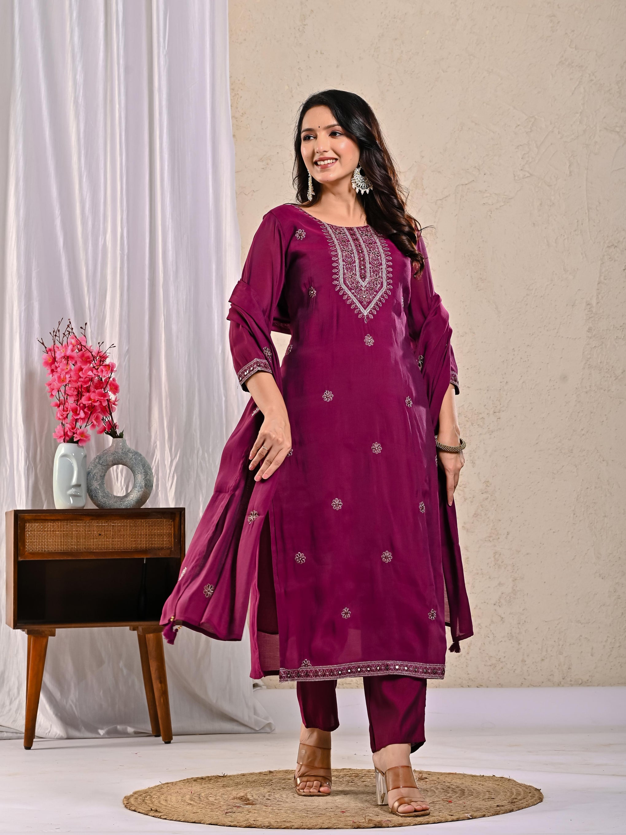 Indolady “Vintage Wine Glow” Party Wear Suit Set