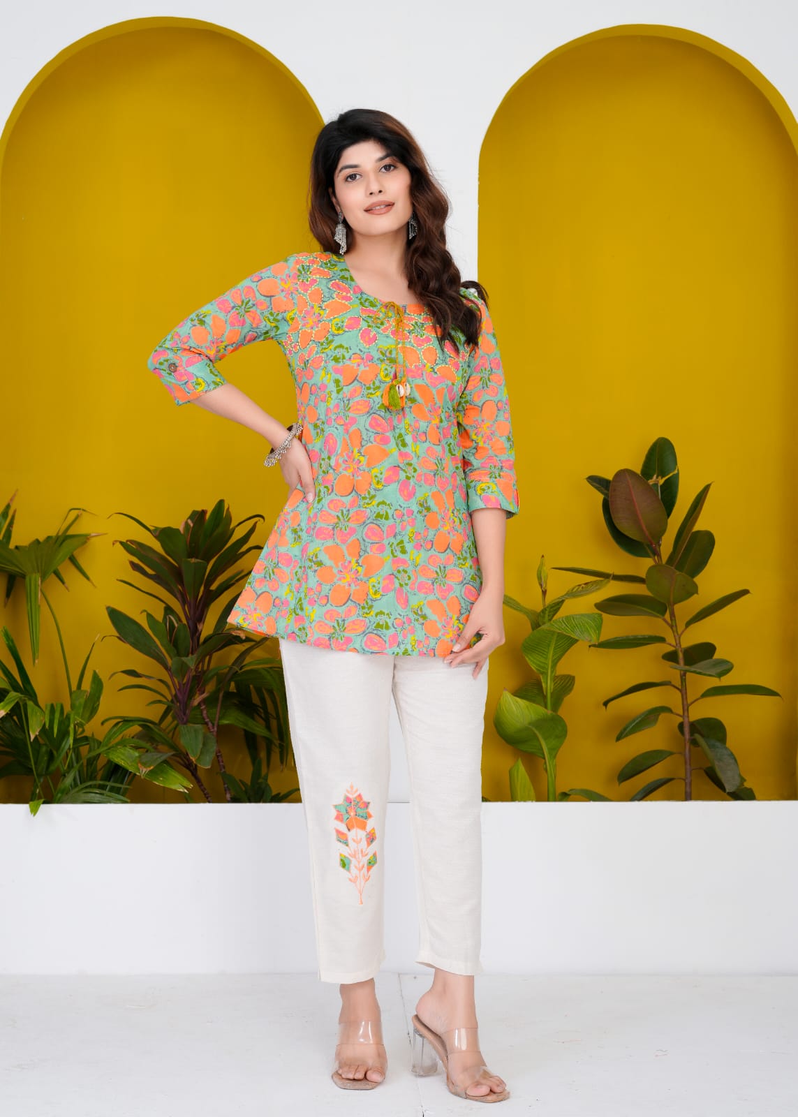 Upgrade your wardrobe with the Indolady Green Patchwork Co-ord Set, a perfect fusion of style and comfort. Crafted from 100% pure cotton, this lightweight and breathable co-ord set ensures all-day ease. The unique patchwork detailing adds a trendy touch, making it a versatile choice for casual outings, vacations, or relaxed days at home. Designed for a flattering fit, this set is available in multiple sizes to suit every body type.
