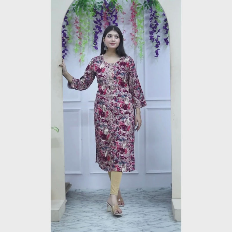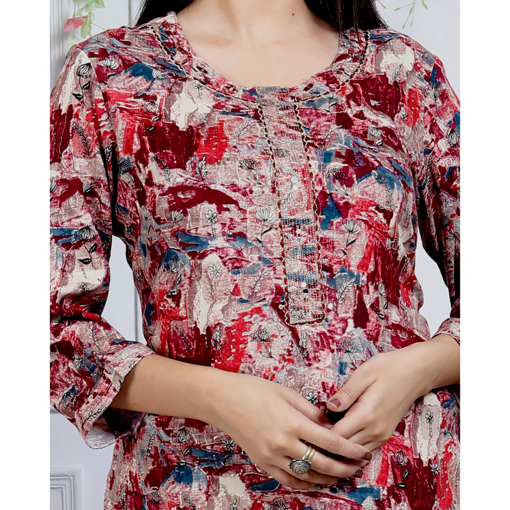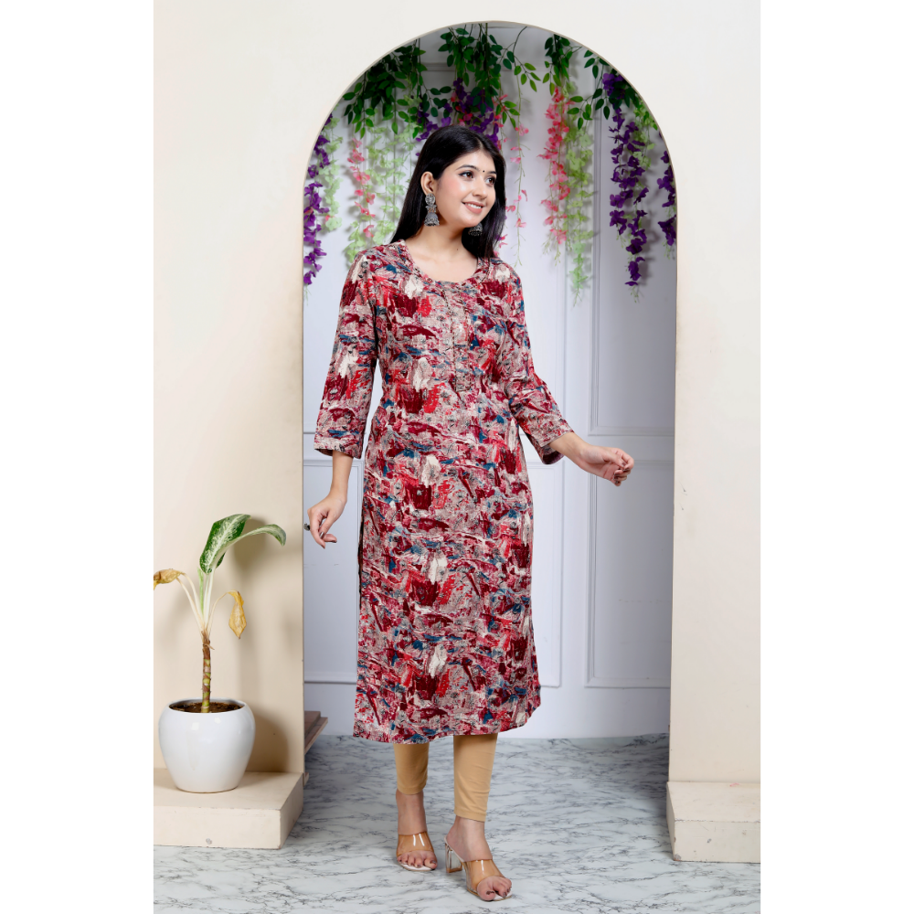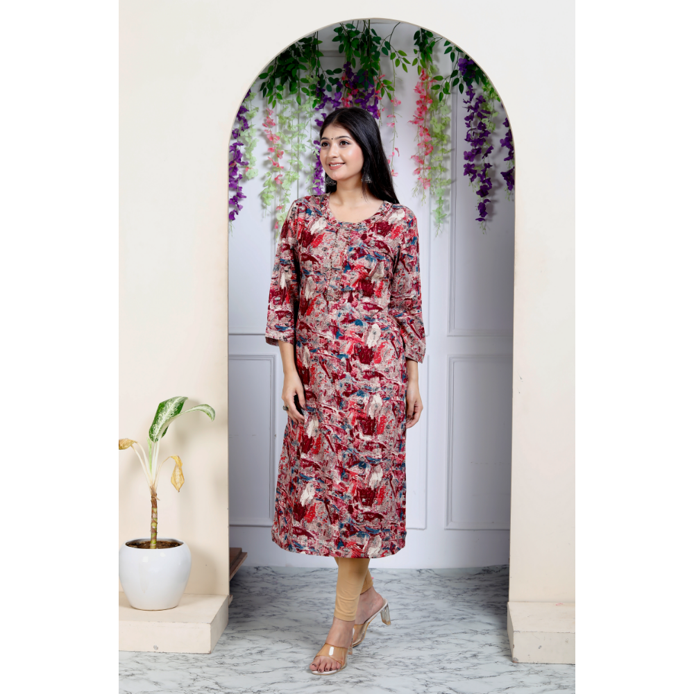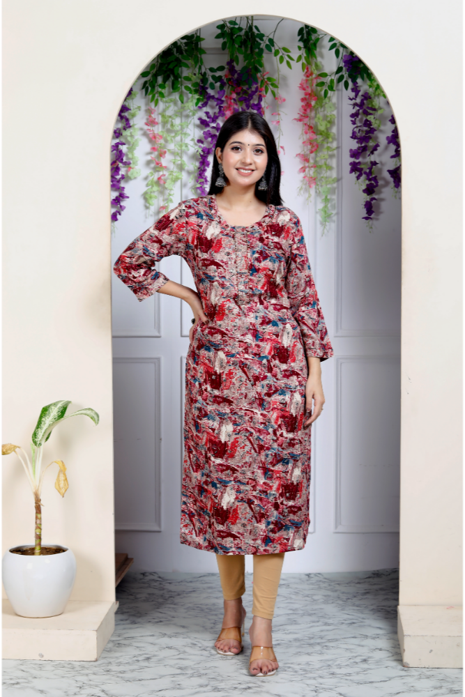 Indolady Maroon Straight Kurta