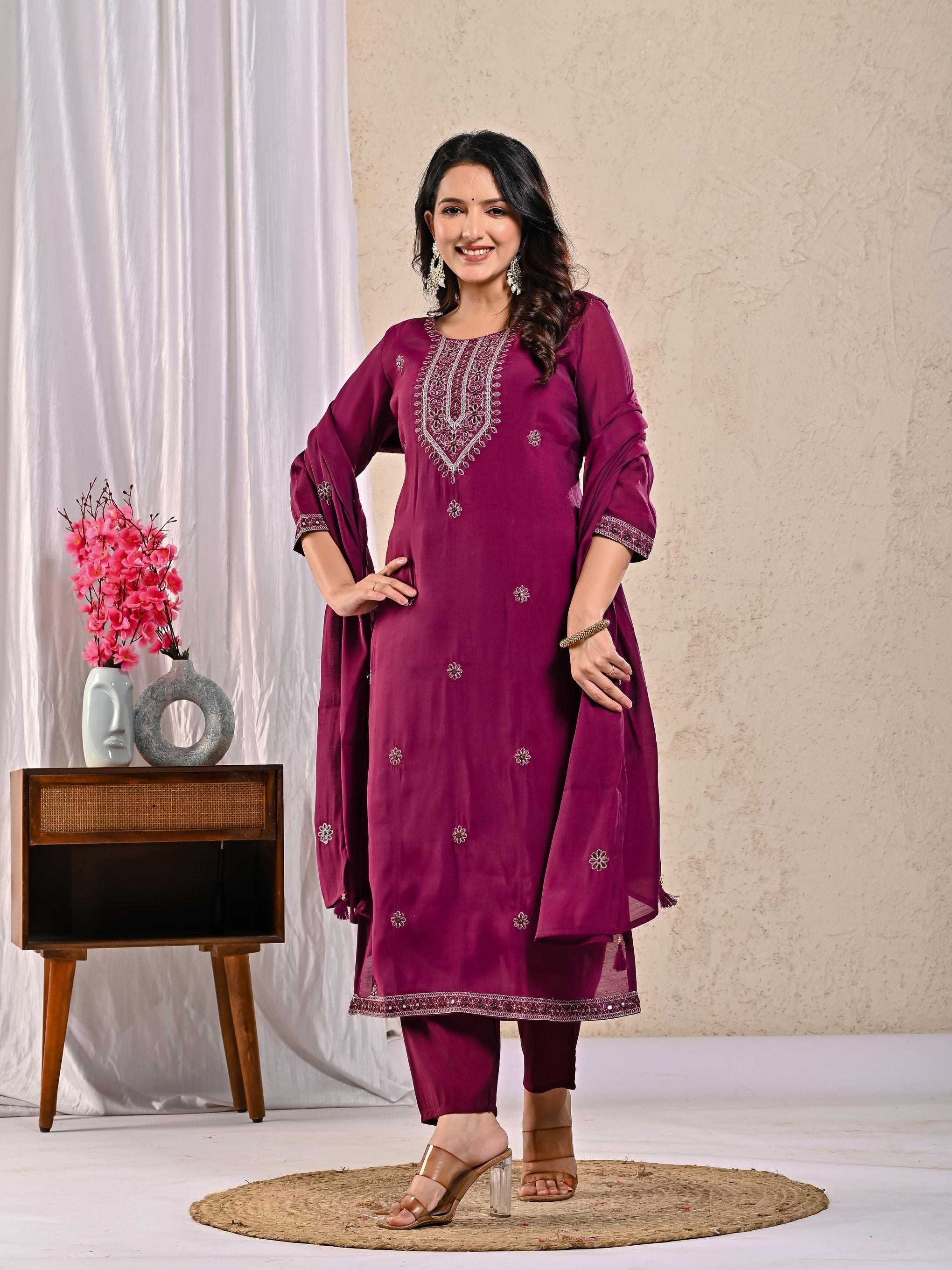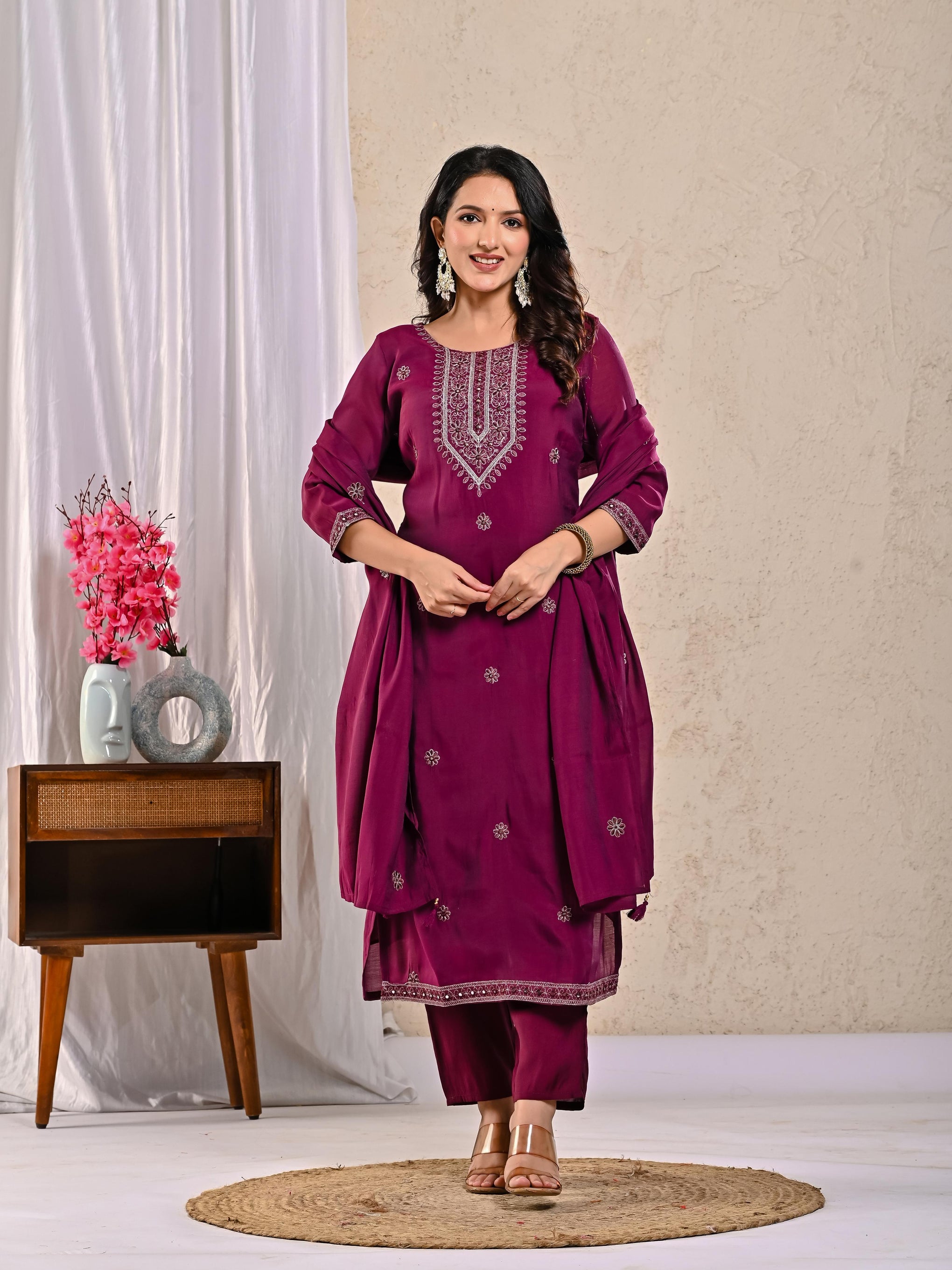 Indolady Crimson Wine Glow Festive Suit Set Skip to content