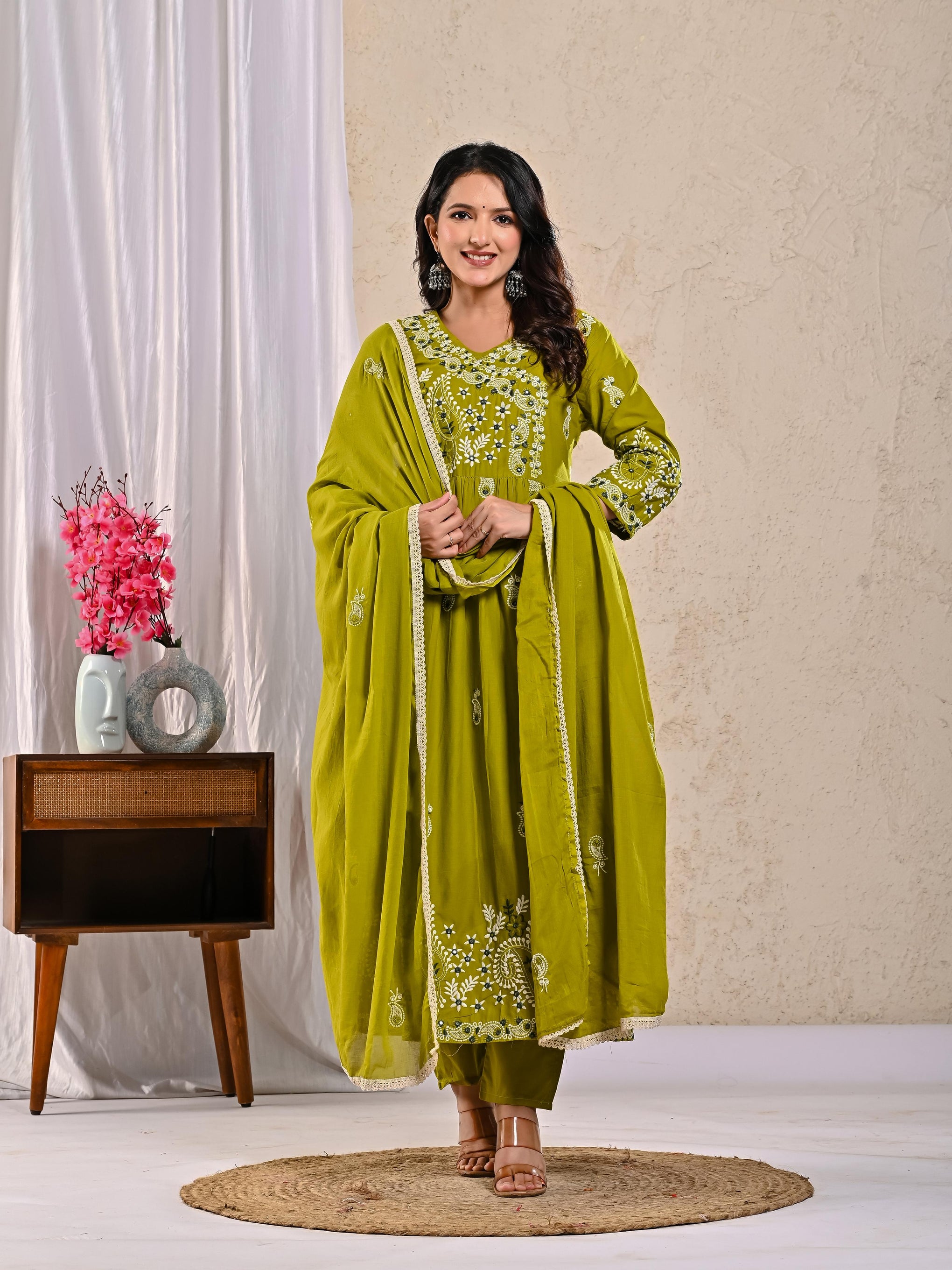 • Work: Elegant all-over embroidery on kurta & dupatta
