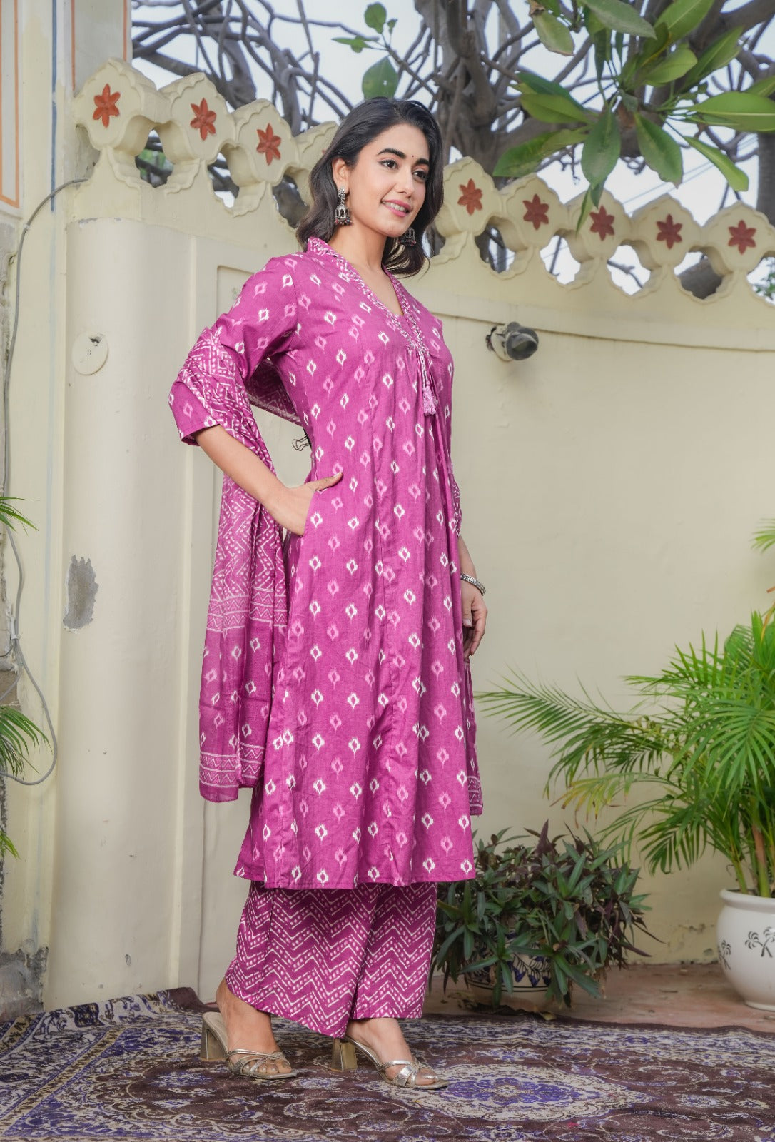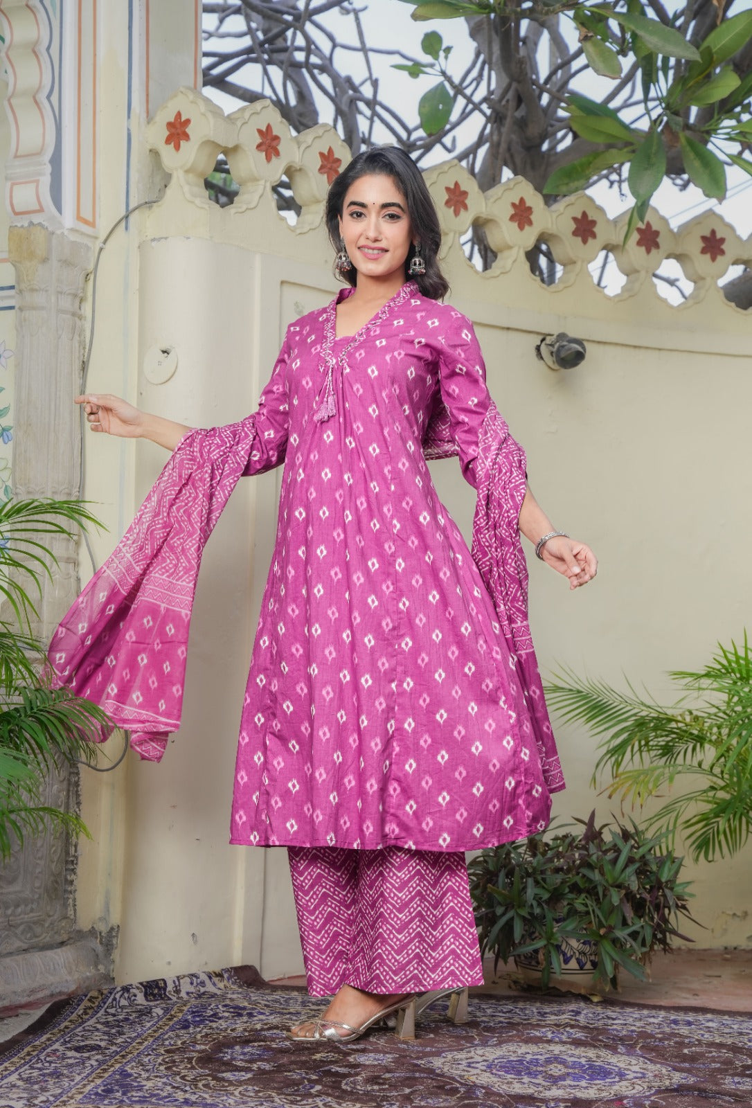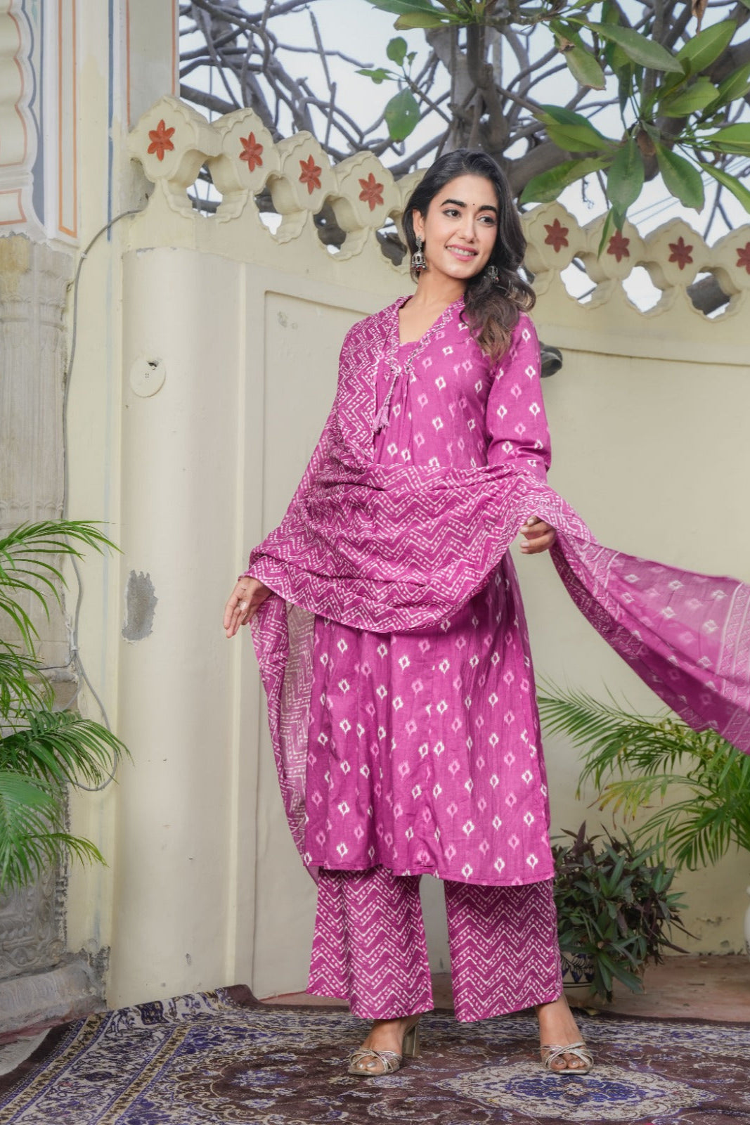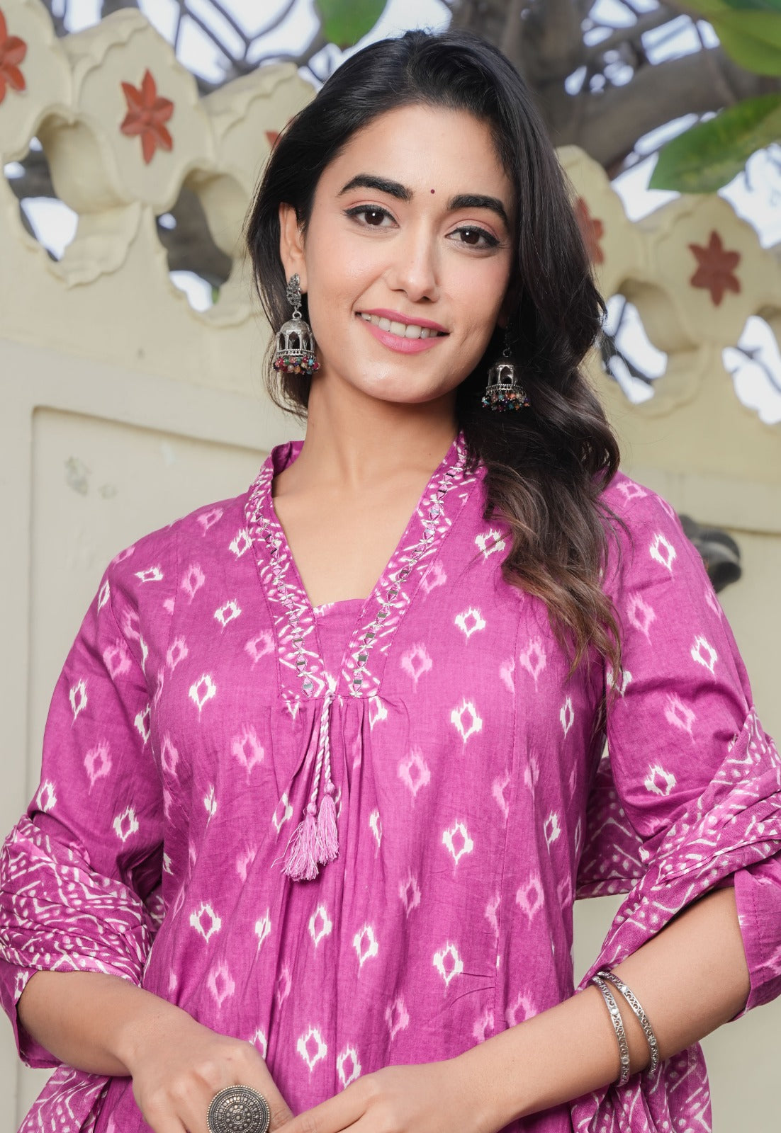 Brighten your wardrobe with the Indolady Pink A-Line Suit Set, designed for effortless grace and comfort. Crafted from pure cotton, this breathable and lightweight ensemble is perfect for all-day wear. The A-line kurta offers a flattering flowy silhouette, while the matching palazzo ensures a relaxed yet stylish look. Whether for festive occasions, casual outings, or workwear, this suit set is a timeless choice.