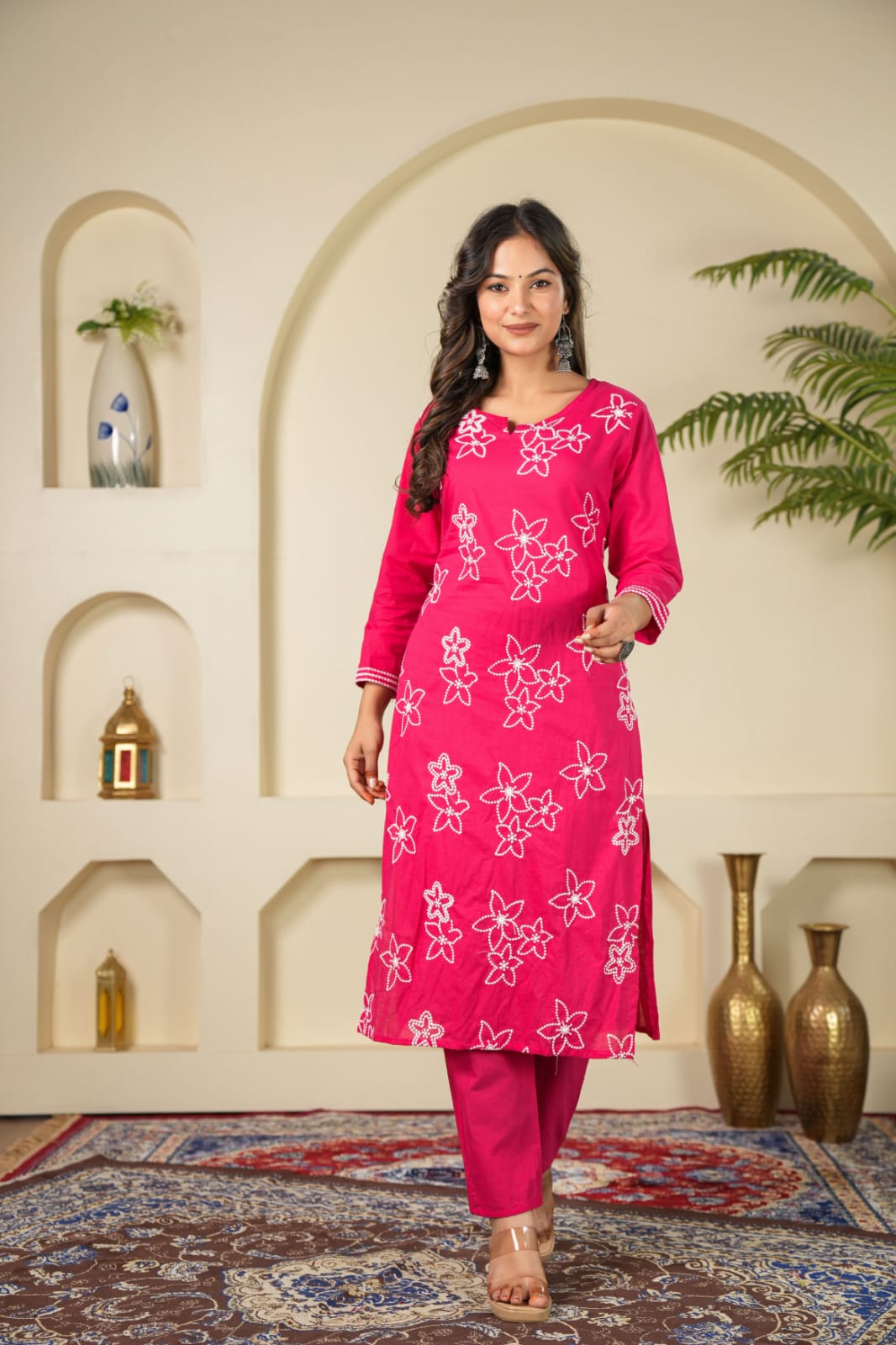 Designed in a charming pink shade, it radiates freshness and femininity – making it an ideal choice for festive gatherings, casual parties, or daytime celebrations. Soft, breathable cotton ensures all-day comfort while the embroidery detailing makes it stand out for special occasions.