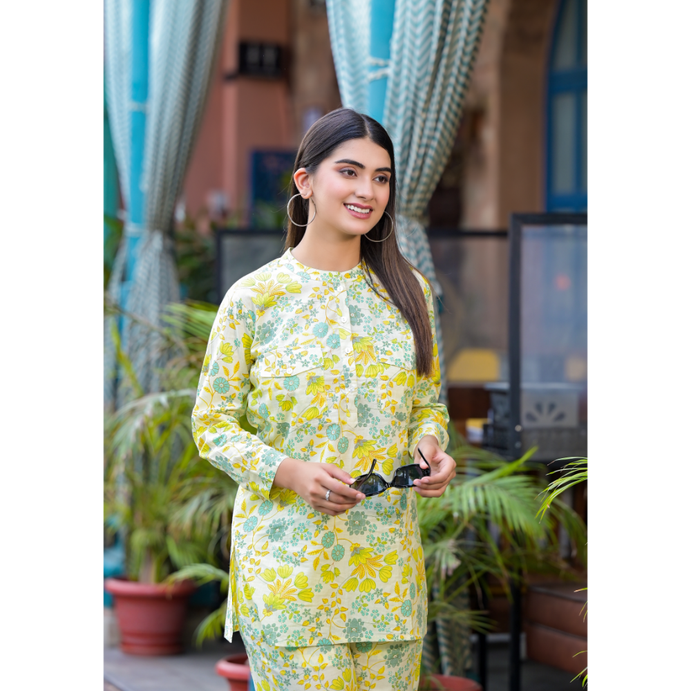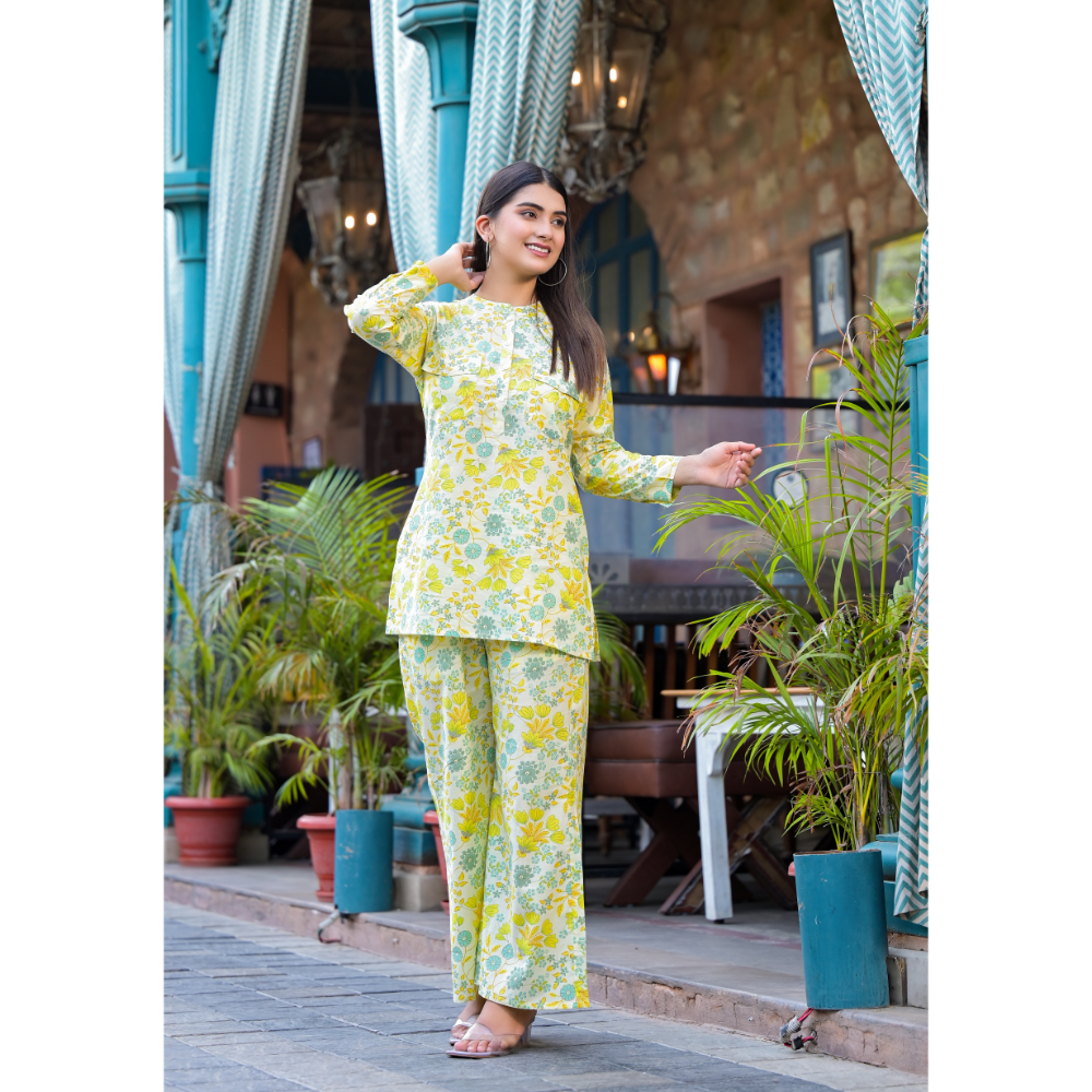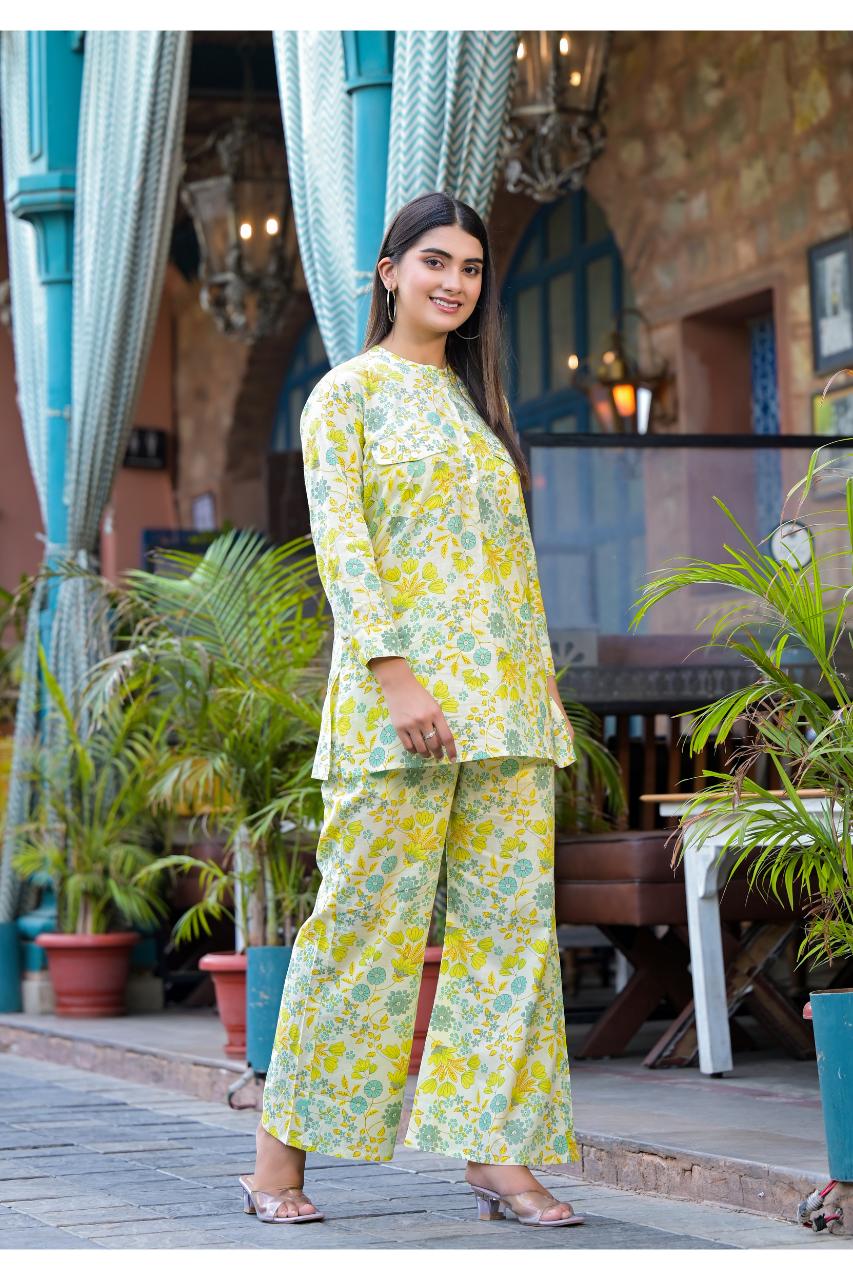Indolady Yellow Cotton Co-Ord Set Skip to content