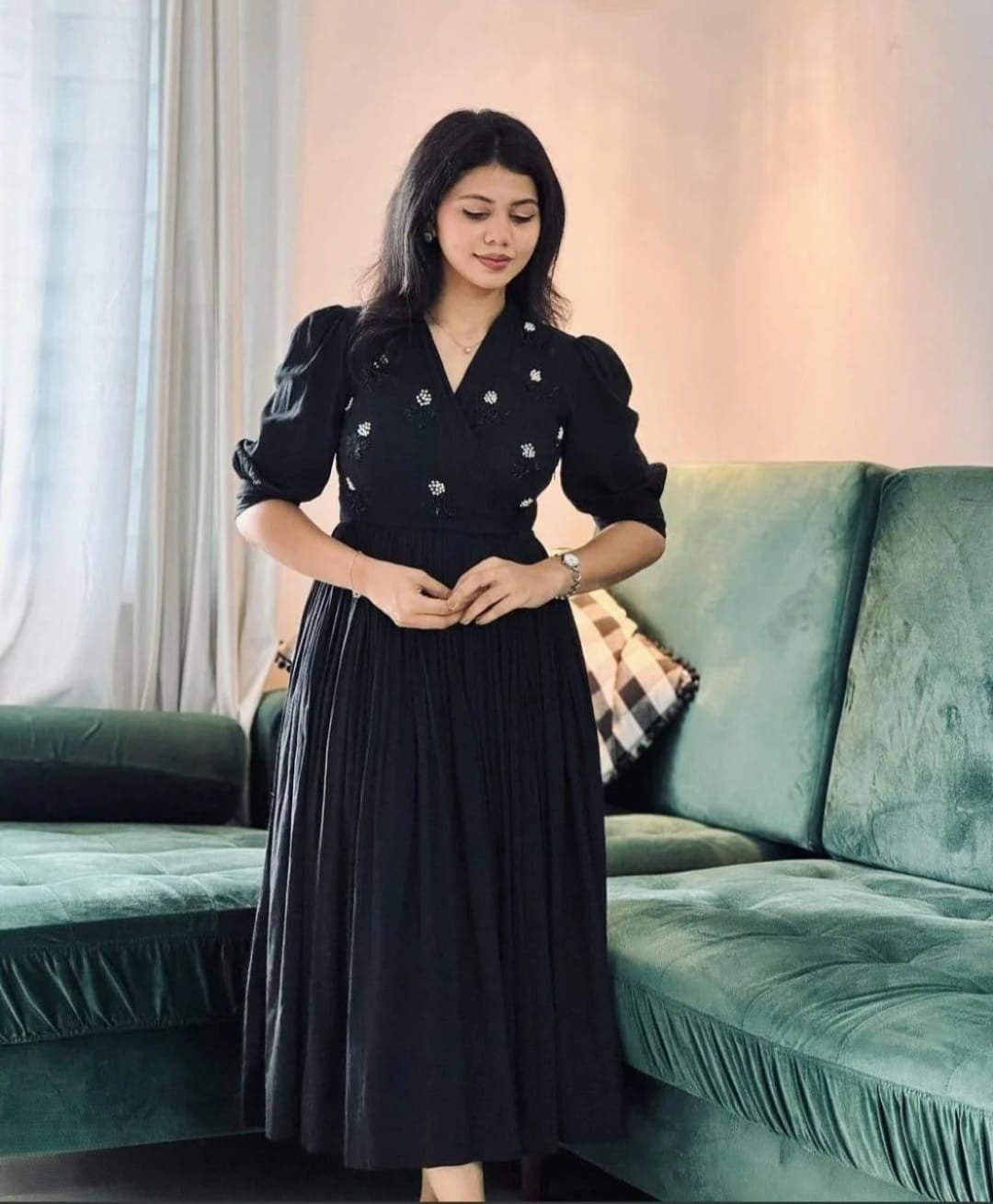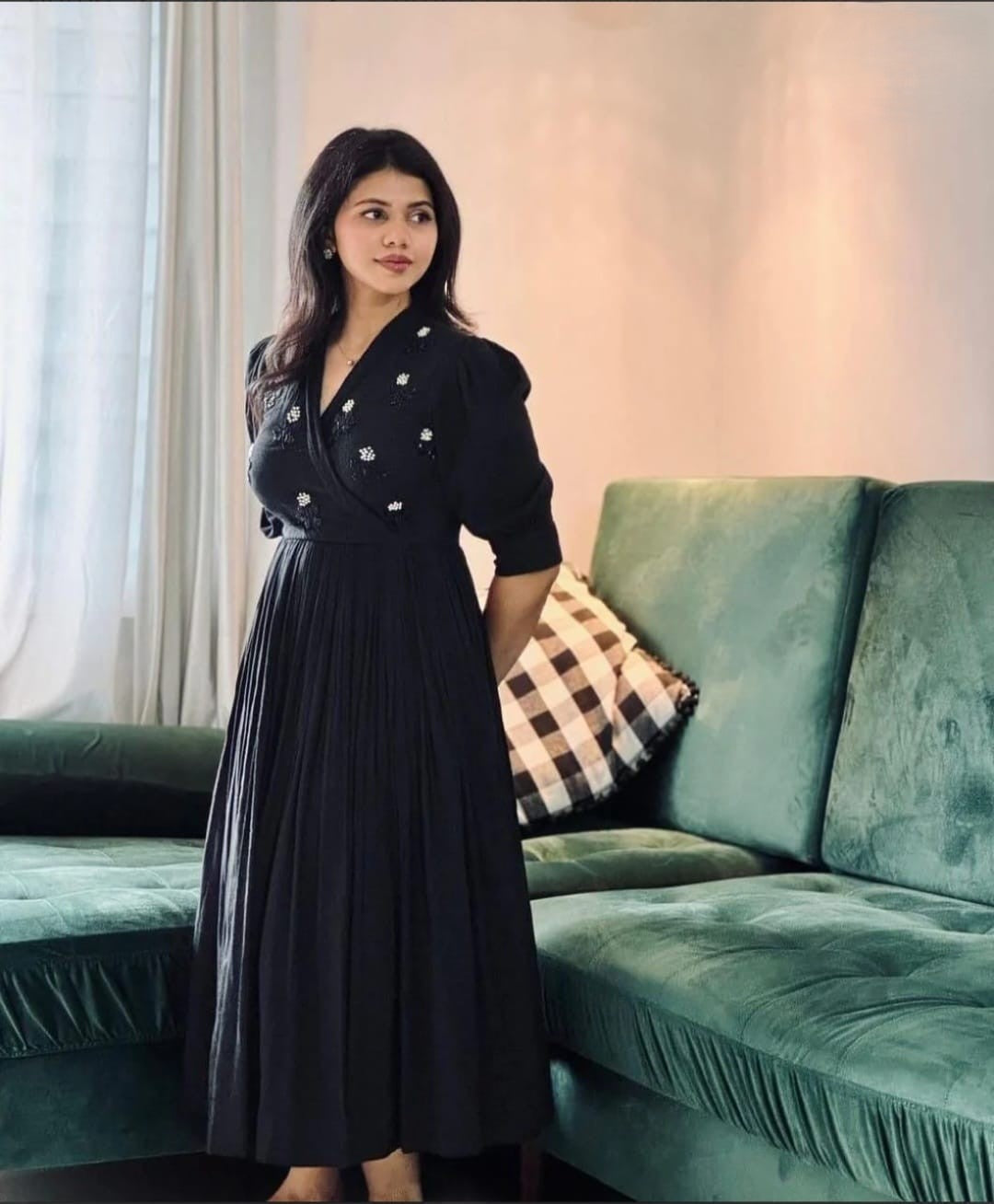 Pair it with nude heels, minimal jewellery, and a soft makeup look for a timeless, graceful style.
